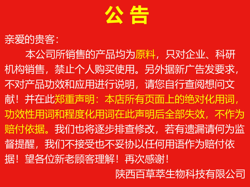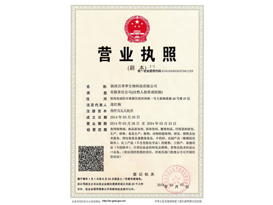 陜西百草萃生物科技有限公司,位于陜西省咸陽(yáng)市秦都區(qū)濱河西路1號(hào)大秦御港城,公司成立于1996年,主要從事天然植物種植、研發(fā)、生產(chǎn)、加工、銷(xiāo)售為一體的高科技企業(yè)。主營(yíng)醫(yī)藥原料、保健品原料、化妝品原料,精細(xì)化工原料。公司致力于人類(lèi)健康保護(hù)事業(yè)“ 以科技為動(dòng)力,以質(zhì)量求生存” 的本質(zhì),依托陜西高新科技技術(shù)人才和科研優(yōu)勢(shì),已形成多學(xué)科、全方位、高層次的技術(shù)管理精英團(tuán)隊(duì)。充分利用秦巴山區(qū)的天然藥物資源,歷經(jīng)多年發(fā)展為打造百草萃生物品牌奠定了基礎(chǔ)。